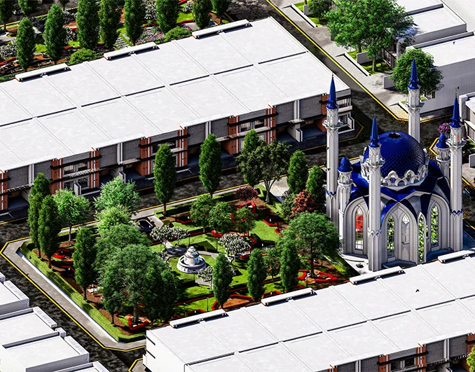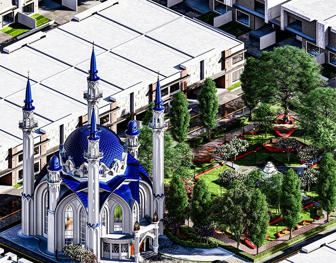 The Grand Mosque within Grand One City serves as a place of worship and community gathering and religious activities.